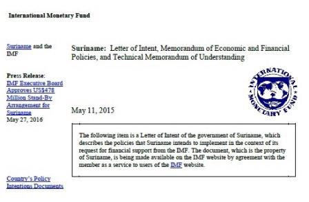 Letter of Intent, Memorandum of Economic and Financial Policies, and Technical Memorandum of Understanding (08 juni 2016)